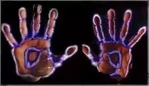 实验表明,人体辉光的颜色和形状会根据人的健康状况、生理和心理活动等发生变化。当人们把手放在一种高频高压环境中时,手阳明、大肠经的部位会出现一连串明亮光斑。